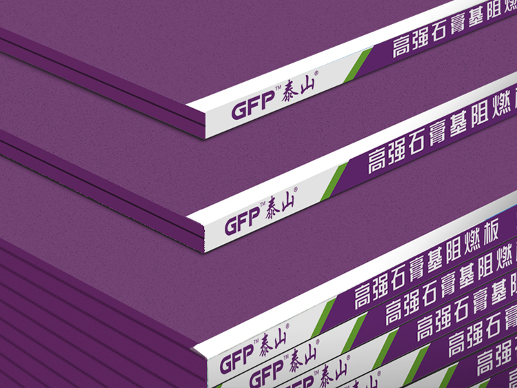 GFP®泰山®高强石膏基阻燃板是公司研发的新型石膏基高性能纤维板,通过独创胶凝硬板技术,高强护面纸、高强石膏与高强纤维增强材料完美融合,产品密实度高,具有强度高、握钉力强、耐火稳定性好、隔音效果显著、防变形抗冲击等优点,是衬板的理想板材。